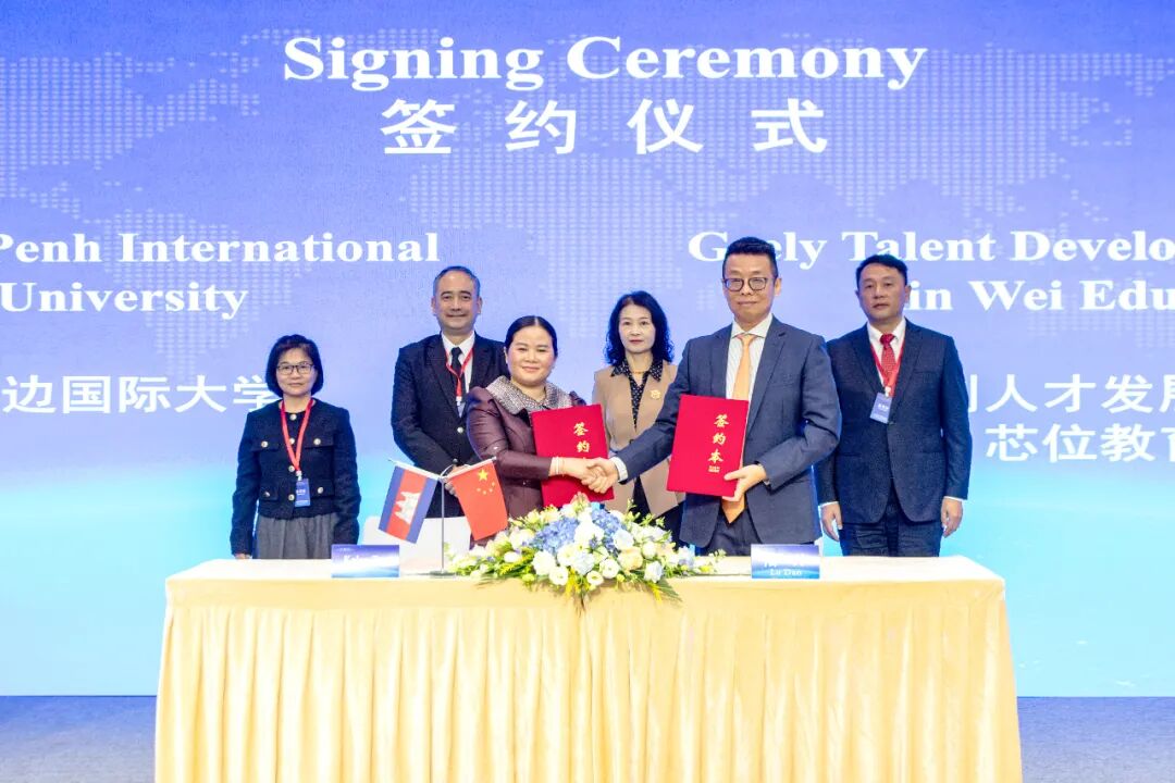 芯位學(xué)院合作簽約儀式成為會議首日的最大亮點。吉利人才發(fā)展集團聯(lián)合芯位教育與印尼布老爪哇大學(xué)(Universitas Brawijaya)、柬埔寨大學(xué)(University of Cambodia)、金邊國際大學(xué)(Phnom Penh International University)正式簽署合作協(xié)議,將圍繞“數(shù)字教育”核心,聯(lián)合打造“芯位學(xué)院”。依托芯位教育智能平臺,將在教育資源共享、人才培養(yǎng)模式創(chuàng)新等方面開展更深入、更廣泛的合作,為學(xué)生成長成才開辟更多可能路徑。