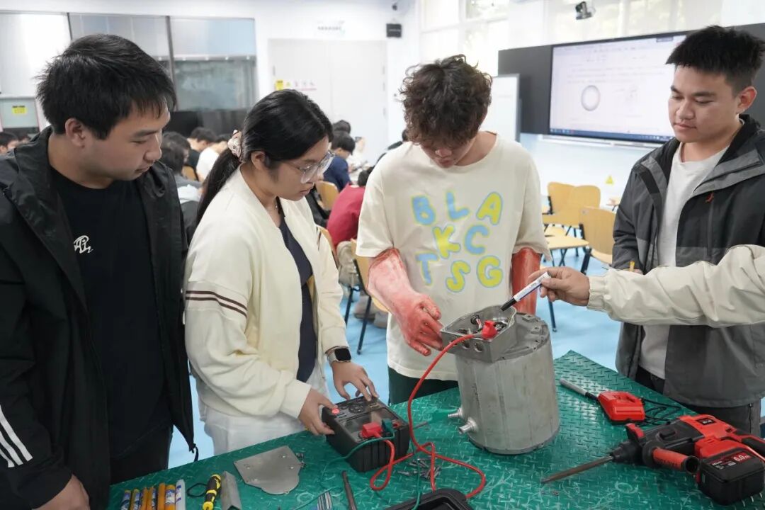 課程設計緊扣最新國標GB/T18488-2024《電動汽車用驅(qū)動電機系統(tǒng)》,王良成將企業(yè)電機開發(fā)、測試的實戰(zhàn)經(jīng)驗提煉為教學案例,從電機控制器調(diào)試到技術指標檢測,每一個實驗項目都對標崗位需求。“課前線上預習打基礎,課中項目實操解難題,課后個性化補強補短板”的混合教學模式,形成“學—測—析—補”閉環(huán),讓學生在實操中掌握合規(guī)操作能力,徹底破解理論與產(chǎn)業(yè)脫節(jié)的難題。