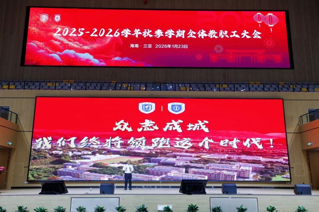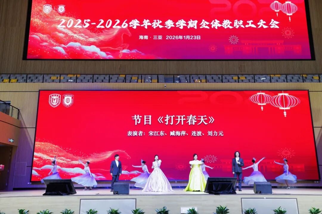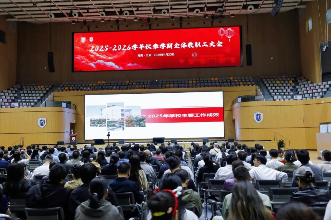 冬日暖陽映初心,奮進(jìn)實(shí)干啟新程。1月23日,三亞學(xué)院2025-2026學(xué)年秋季學(xué)期全體教職工大會(huì)暨2025年USY進(jìn)取者表彰大會(huì)在書藝館隆重召開。全體教職工齊聚一堂,總結(jié)過往成效,共話改革使命,表彰先進(jìn)典型,以昂揚(yáng)姿態(tài)迎接新的挑戰(zhàn)與機(jī)遇。
