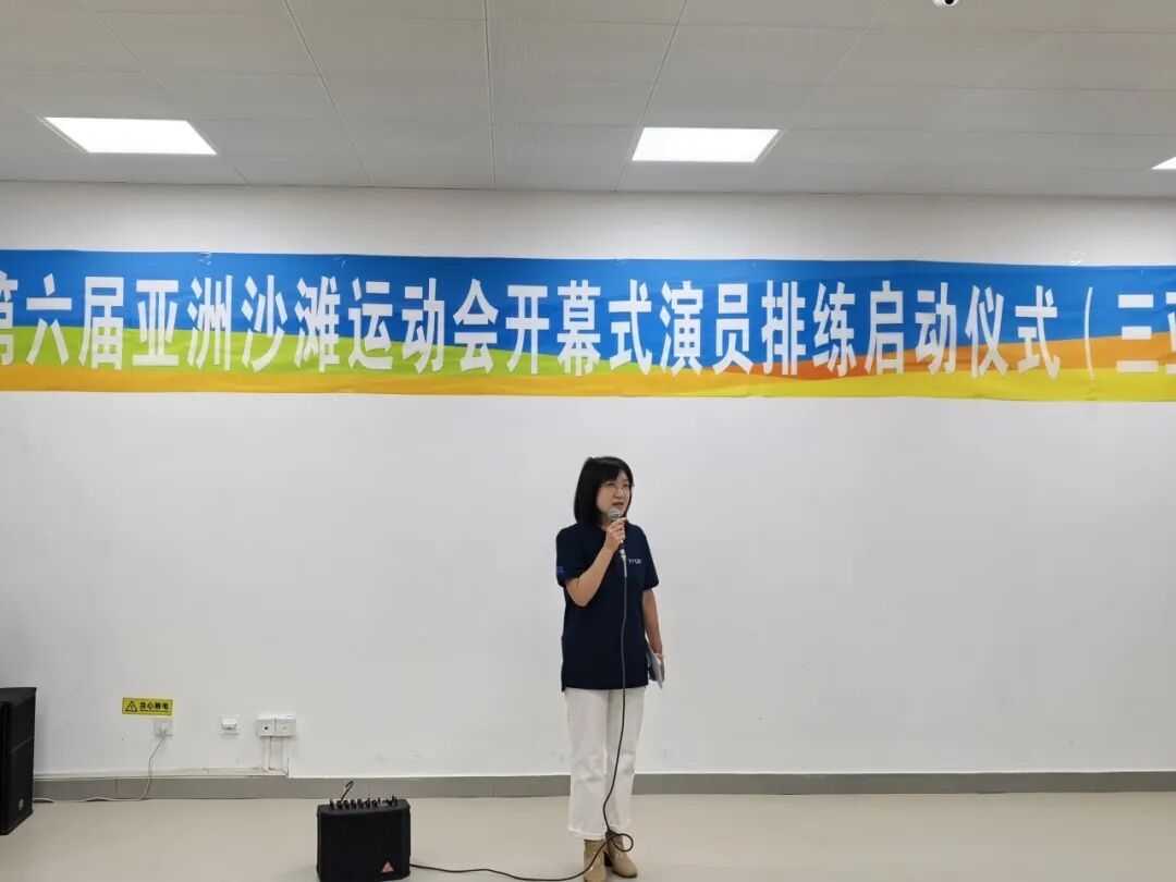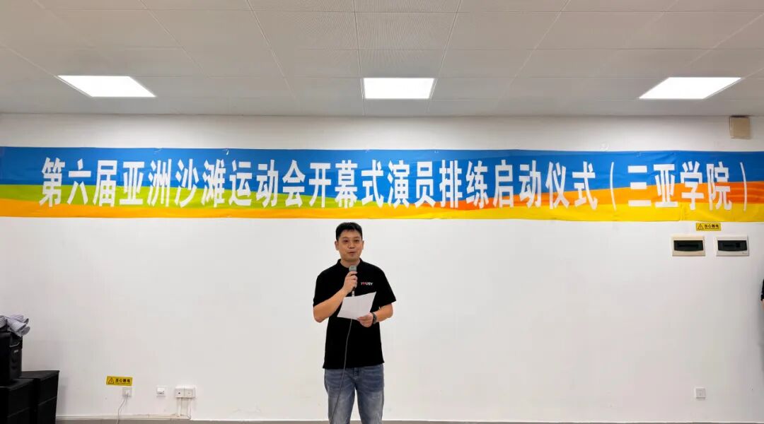 三亞學院黨委副書記、副校長、學務長高一蘭在致辭中為同學們打氣:“亞沙會是展示海南自貿(mào)港建設成果的重要窗口。參與開幕式表演是學校服務地方發(fā)展、助力國際賽事的重要實踐,更是你們展現(xiàn)自我、歷練成長的寶貴機遇。希望大家以主人翁姿態(tài)投入排練,發(fā)揚吃苦耐勞的精神,用最佳狀態(tài)在亞沙會舞臺上綻放光彩!”