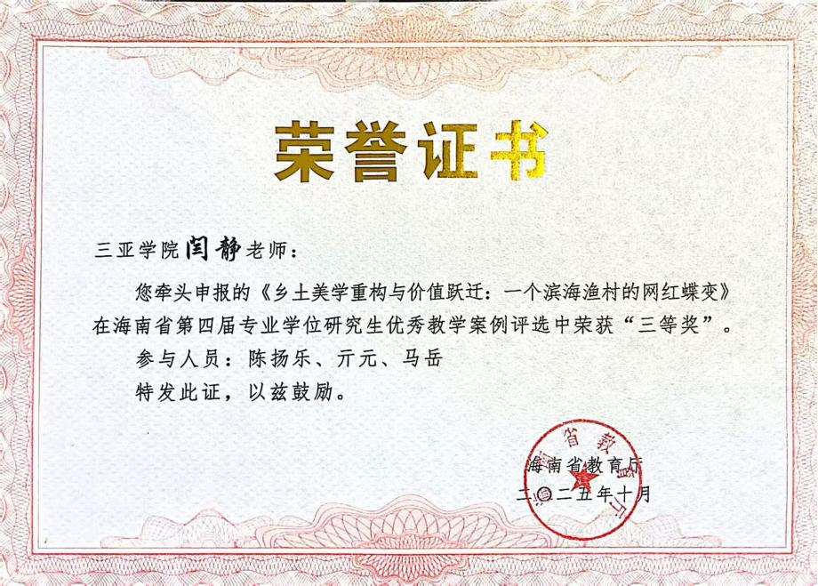 海南省優(yōu)秀案例獲獎(jiǎng)證書