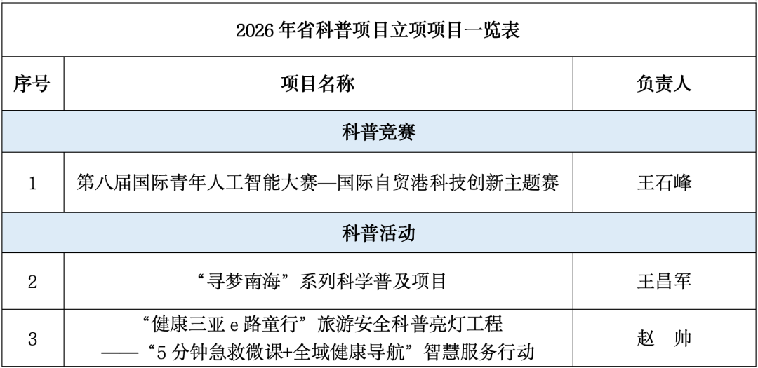 全省第一!近日,海南省2026年省科普項(xiàng)目立項(xiàng)名單公布,三亞學(xué)院一口氣拿下3個(gè)項(xiàng)目,成為全省獲批項(xiàng)目最多的高校!