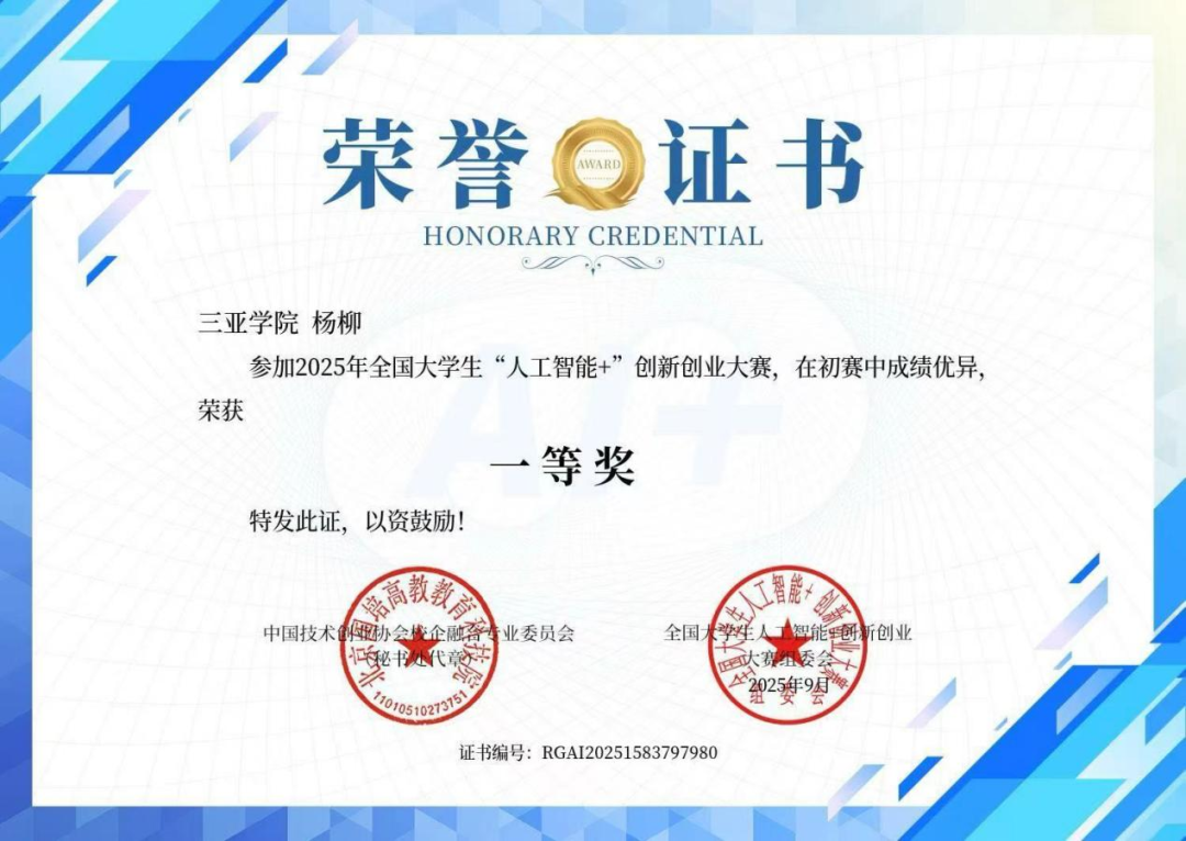 大一入學(xué)時,學(xué)校為她配備了一位學(xué)業(yè)導(dǎo)師。導(dǎo)師發(fā)現(xiàn)她對金融領(lǐng)域有著濃厚的興趣,便鼓勵她在會計專業(yè)的基礎(chǔ)上,慢慢拓展金融知識,還幫她對接了企業(yè)資源。在項(xiàng)目制教學(xué)中,她選擇了與金融相關(guān)的創(chuàng)新項(xiàng)目,一路過關(guān)斬將,斬獲第十四屆大學(xué)生“創(chuàng)新創(chuàng)業(yè)及創(chuàng)意”大賽海南省賽區(qū)一等獎、全國大學(xué)生“人工智能+”創(chuàng)新創(chuàng)業(yè)大賽初賽一等獎。