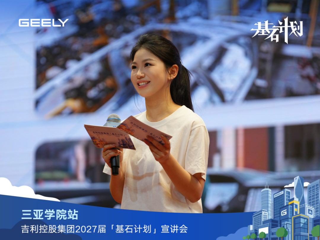 吉利控股集團吉利學(xué)堂校長、人力共享中心總經(jīng)理戴惠芳老師的壓軸囑托,更是讓學(xué)子們感受到吉利對人才的重視與誠意。戴老師細數(shù)吉利近30年的“造車+辦教育”之路,直言“走進校園,是為了更好地走向社會”從來不是口號,而是吉利實實在在的行動。2025年「基石計劃」培養(yǎng)的609名人才中,“繁星計劃”走出20多位門店銷冠,星礫項目多人入選星睿大模型、醇氫項目;2026年「基石計劃」將繼續(xù)擴大培養(yǎng)規(guī)模,為更多三亞學(xué)子迎來了絕佳的入選機遇。 戴老師強調(diào),吉利「基石計劃」為學(xué)子提供了一線實戰(zhàn)、大咖帶教、獨當(dāng)一面的成長機會,更為學(xué)子們搭建了沒有天花板的舞臺,愿大家將青春夢想融入汽車產(chǎn)業(yè)浪潮,與吉利雙向奔赴,實現(xiàn)自我價值。