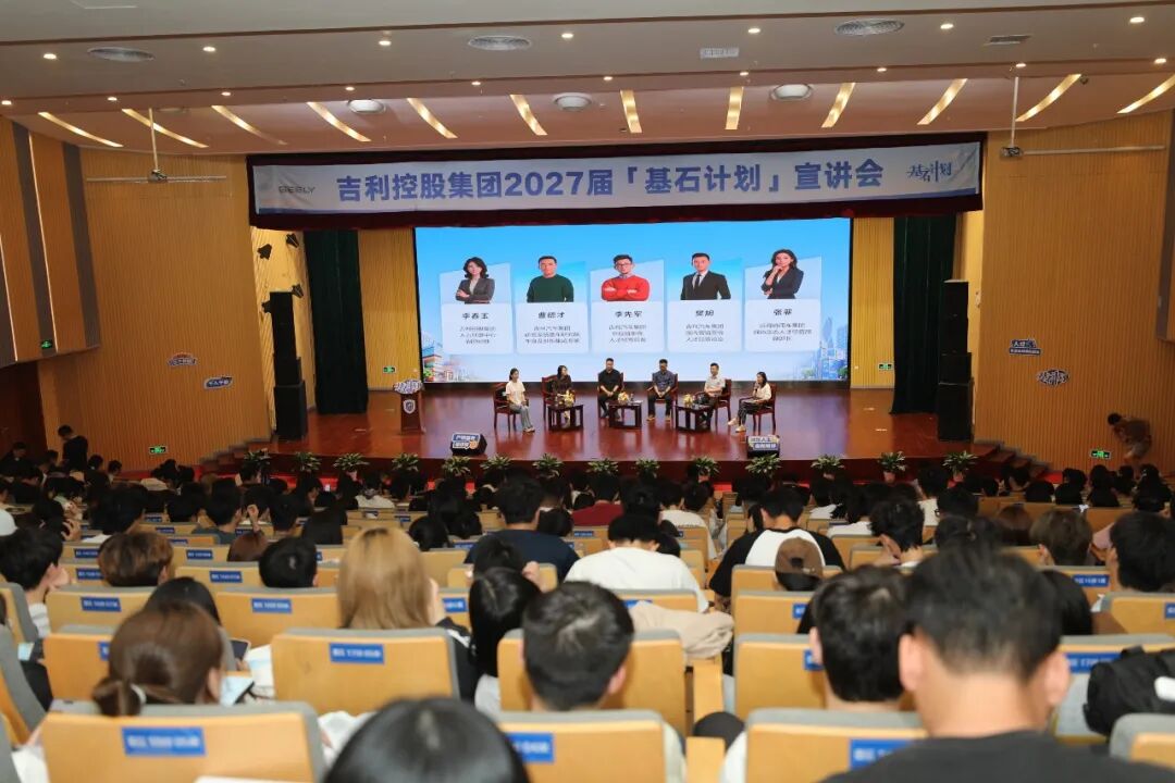 “基石論道圓桌交流”環(huán)節(jié),是本次宣講會的“干貨高光時刻”。吉利人力共享中心副總經(jīng)理李春玉,星礫項目代表、吉利汽車集團研發(fā)系統(tǒng)整車研究院車身及外飾集成專家曹德才,鏈星項目代表、吉利汽車集團供應(yīng)鏈系統(tǒng)人才結(jié)營總監(jiān)李先軍, 繁星項目代表、吉利汽車集團國內(nèi)營銷系統(tǒng)人才經(jīng)營總監(jiān)樊旭,M100項目代表、吉利商用車集團綠色生態(tài)人才經(jīng)營部副部長張菲等集研發(fā)、供應(yīng)鏈、營銷、綠色生態(tài)等賽道的專家嘉賓齊聚一堂,圍繞「基石計劃」的人才布局、各項目培養(yǎng)特色、行業(yè)變革下的青年素養(yǎng)等核心問題展開深度探討。 李春玉老師點明「基石計劃」是吉利人才森林的“育苗基地”,為集團注入鮮活動能;研發(fā)賽道專家曹德才老師詳解整車正向開發(fā)體系、專業(yè)技術(shù)與質(zhì)量體系三大硬核能力;營銷賽道樊旭老師聚焦洞察共情、數(shù)字化運營、數(shù)據(jù)分析等核心競爭力;供應(yīng)鏈賽道李先軍老師解鎖商務(wù)、物流、成本管理等五大發(fā)展路徑;綠色生態(tài)M100項目張菲老師則圍繞甲醇能源,打造技術(shù)、商業(yè)、政策的三聯(lián)思維。專家們一致認為,面對AI與行業(yè)變革,青年需具備成長型思維、系統(tǒng)性分析能力、跨學(xué)科思考能力,這才是立足未來的核心底氣。