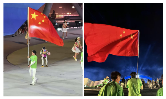 我很開心成為開幕式彩排中國隊的扛旗手。高舉五星紅旗、聽到全場歡呼的那一刻,我無比自豪。這場盛會讓我感受到祖國的強(qiáng)盛,也給予我青春力量。我將銘記榮光,勇?lián)姑?,為學(xué)校爭光、為祖國添彩。