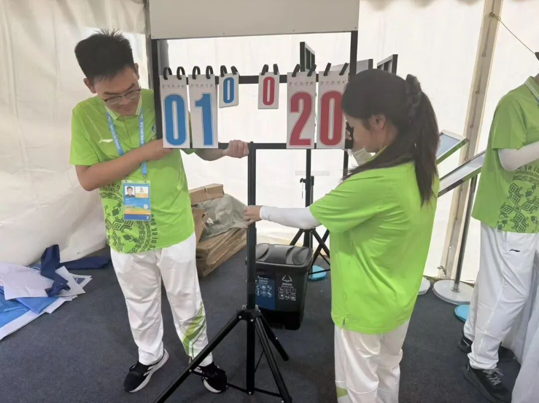 我的工作聚焦賽前預(yù)備:布置場館、調(diào)試設(shè)備、制作白板賽程表。看似枯燥,卻容不得半點(diǎn)馬虎。